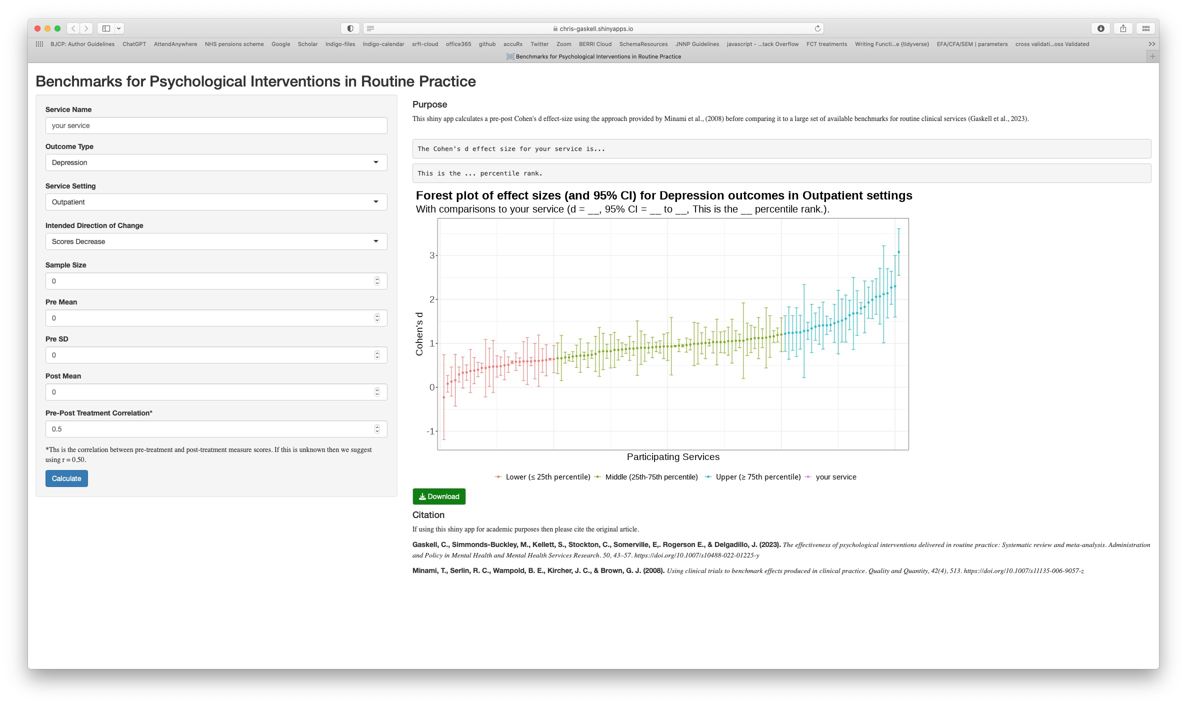 Allows services to generate an effect-size and compare it to benchmarks from the paper.